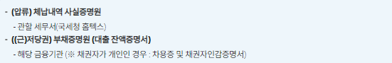 - 상가/주택 임대차 계약서 사본 (또는 상가주택 전월세자금 대출 잔액 증명서)