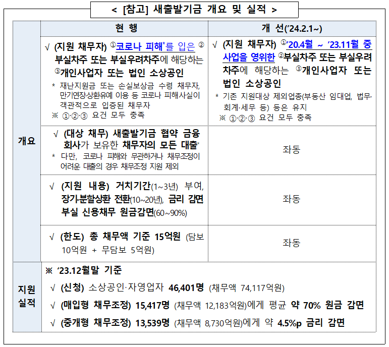 소상공인과 자영업자 여러분, 정부의 새로운 지원 소식을 주목하세요! 2020년 4월 이후 사업을 시작한 분들도 이제 새출발기금으로 채무 조정을 받을 수 있습니다. 기존 지원 대상을 넓혀 더 많은 분들이 혜택을 볼 수 있게 되었어요.